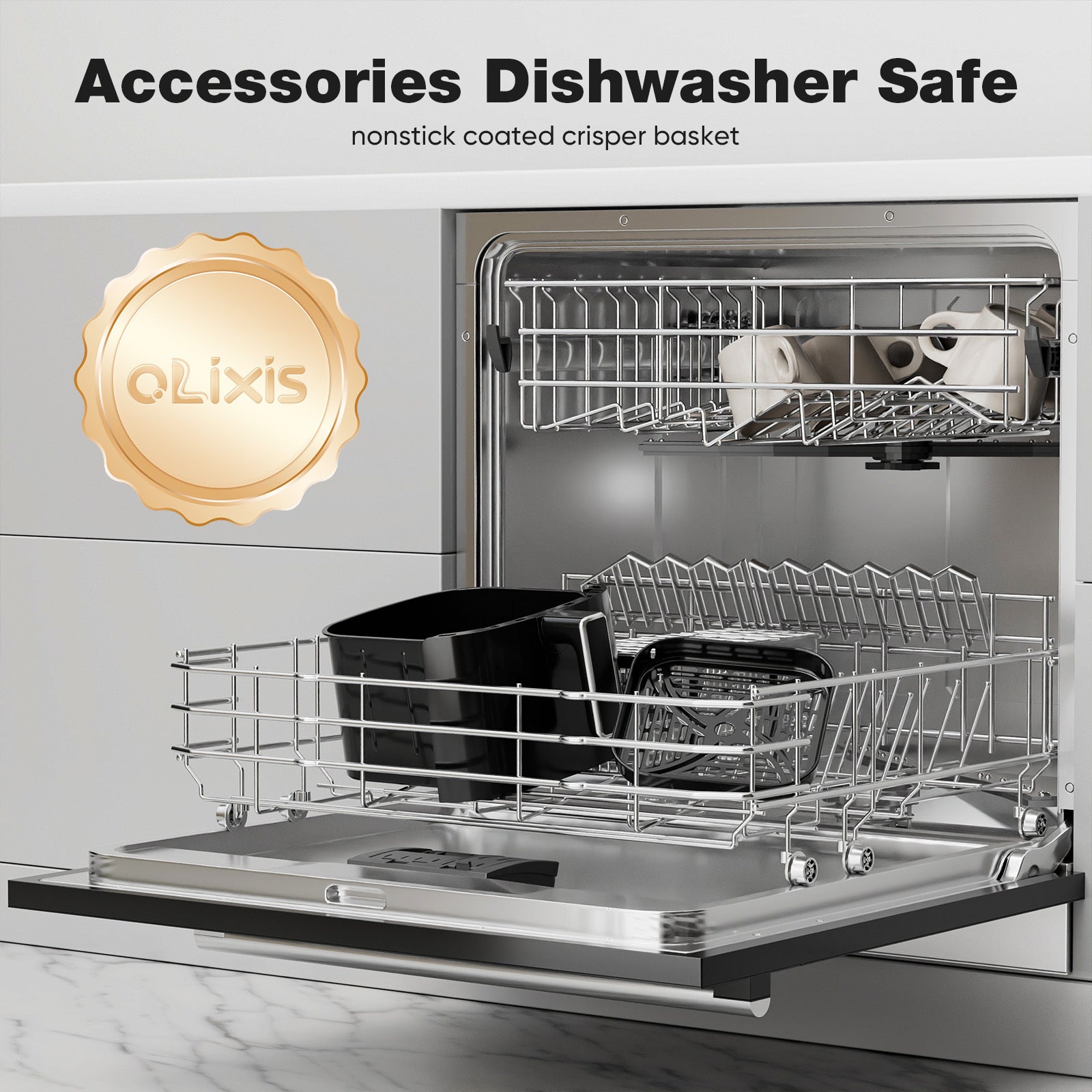 - Easy to Clean & Dishwasher Safe: Cleaning up has never been easier with OLIXIS Air Fryer. The non- stick basket and accessories are dishwasher safe, making the post- meal cleanup quick and hassle- free. Spend more time enjoying your meals and less time scrubbing.