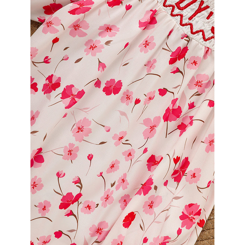 Infant Girls' Floral Smocked Romper 'DADDY'S Girl' Embroidery Short Sleeve Crew Neck Adorable Princess Party Bodysuit