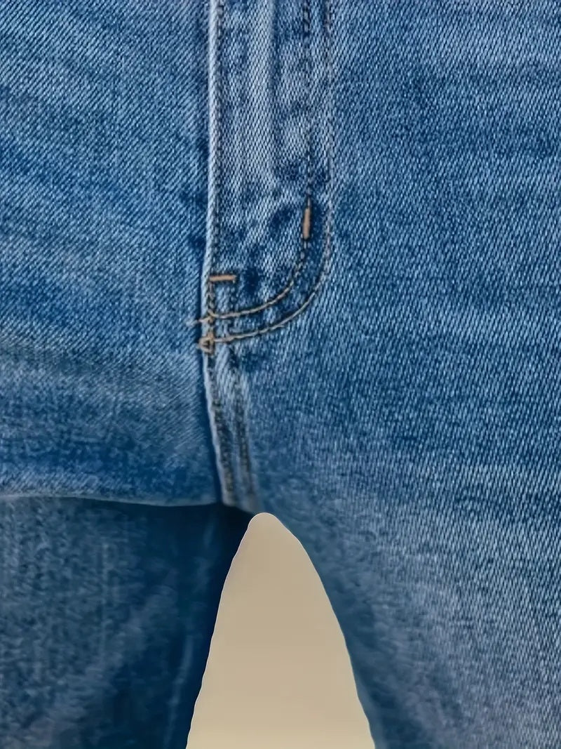 Women's High-Waisted Stretch Skinny Flare Jeans - Vintage Street Style, Distressed Denim With Button And Zipper Fly Closure - Comfortable Blend Casual Pants For Casual Attire